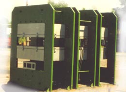 本公司生產的橡膠平板硫化機組,具有設計合理,制造精細、操作簡單、維修方便、生產效率高等特點。特別是PLC程序控制硫化機更具有現代自動控制等特色。